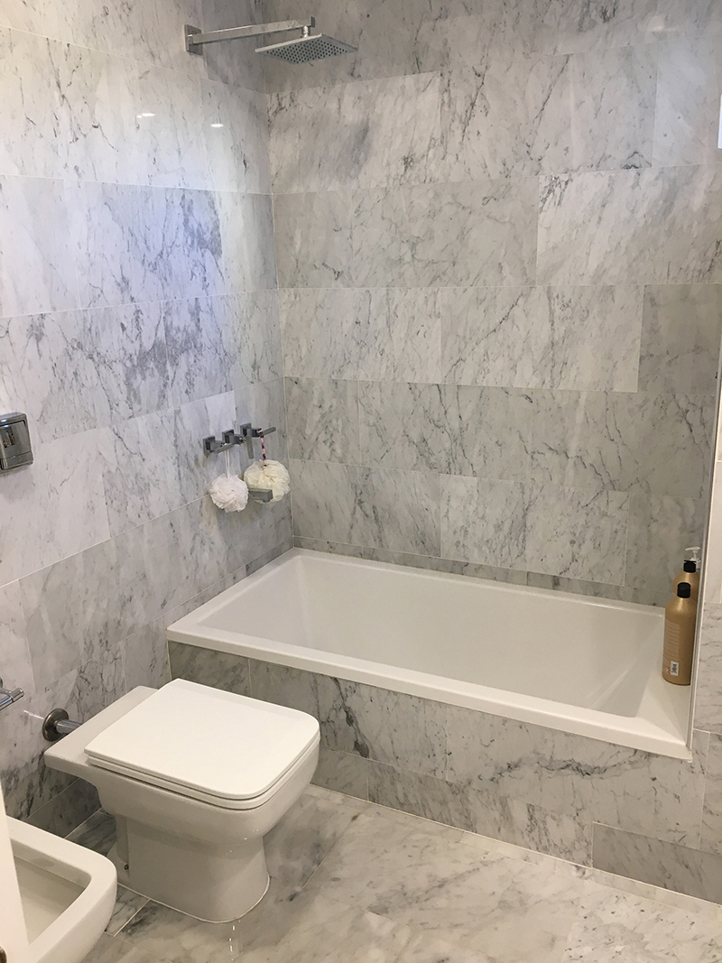 Modernidad y calidez para este departamento de dos pisos ubicado en pleno Palermo. El uso del marmol y los colores neutros arman una paleta sofisticada, con toques de color que aportan los empapelados, cortinas y telas.